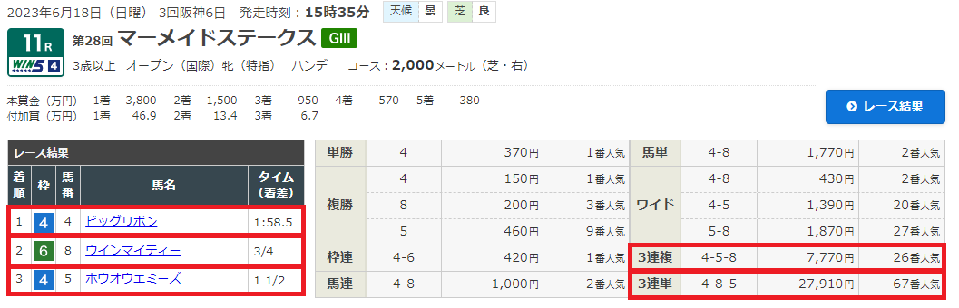 6月18日・阪神11レース マーメイドステークス(GⅢ) 3歳以上牝馬オープン 芝2000m