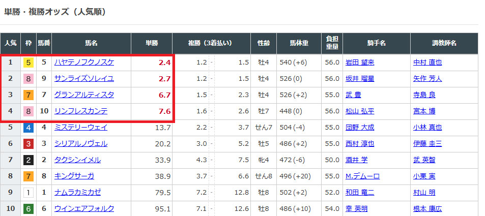 上位人気は集中していて、5番人気以降はかなりオッズがつくようなのでどうにか④が馬券に絡んでくれることを期待したいと思います!