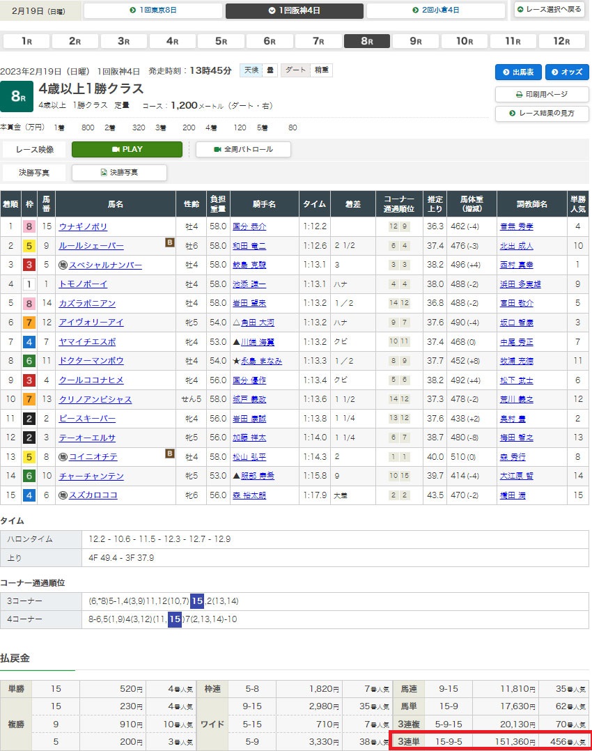 2月12日・阪神5レース 3歳未勝利 芝1800m