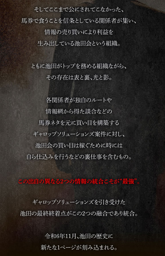 「馬券で食うことを信念に情報の売り買いをしている池田会という組織」