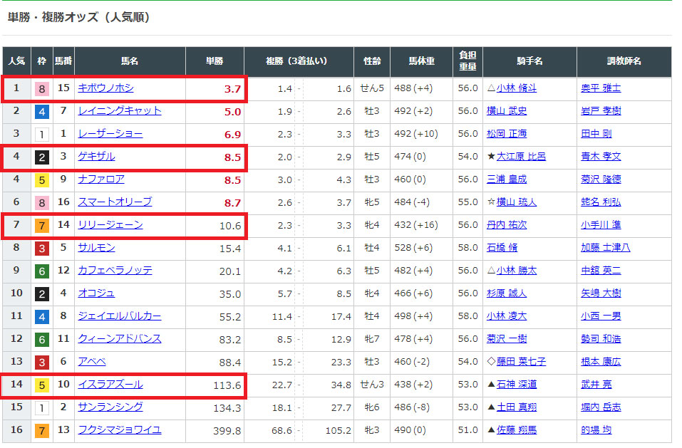 人気馬から大穴馬まで幅広く選ばれていますね。