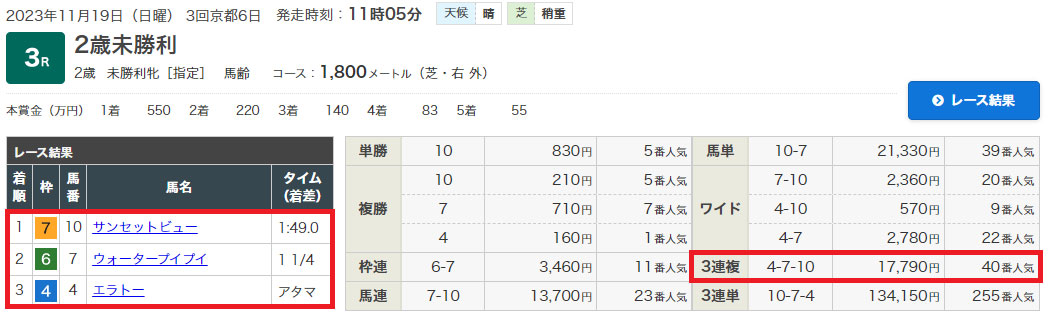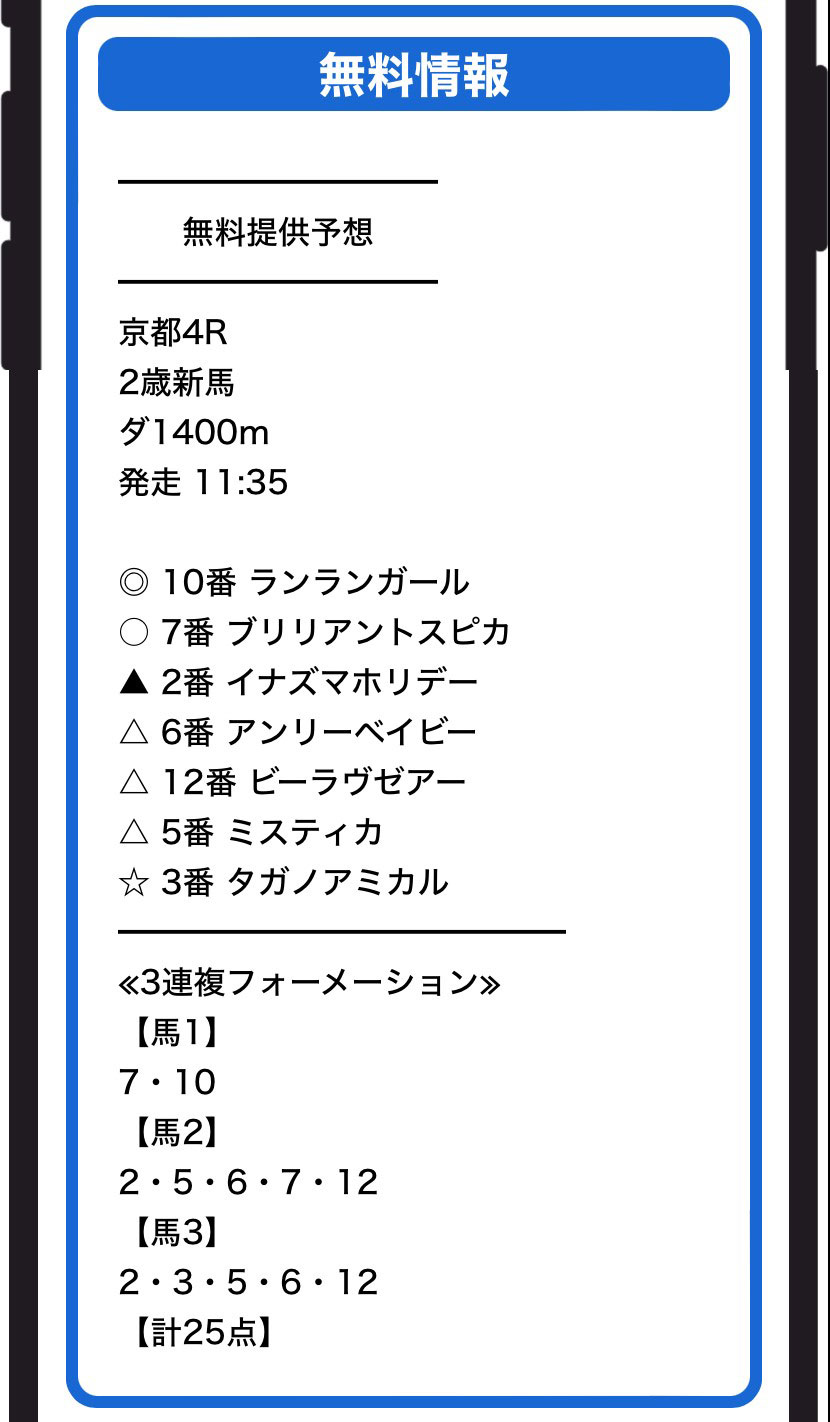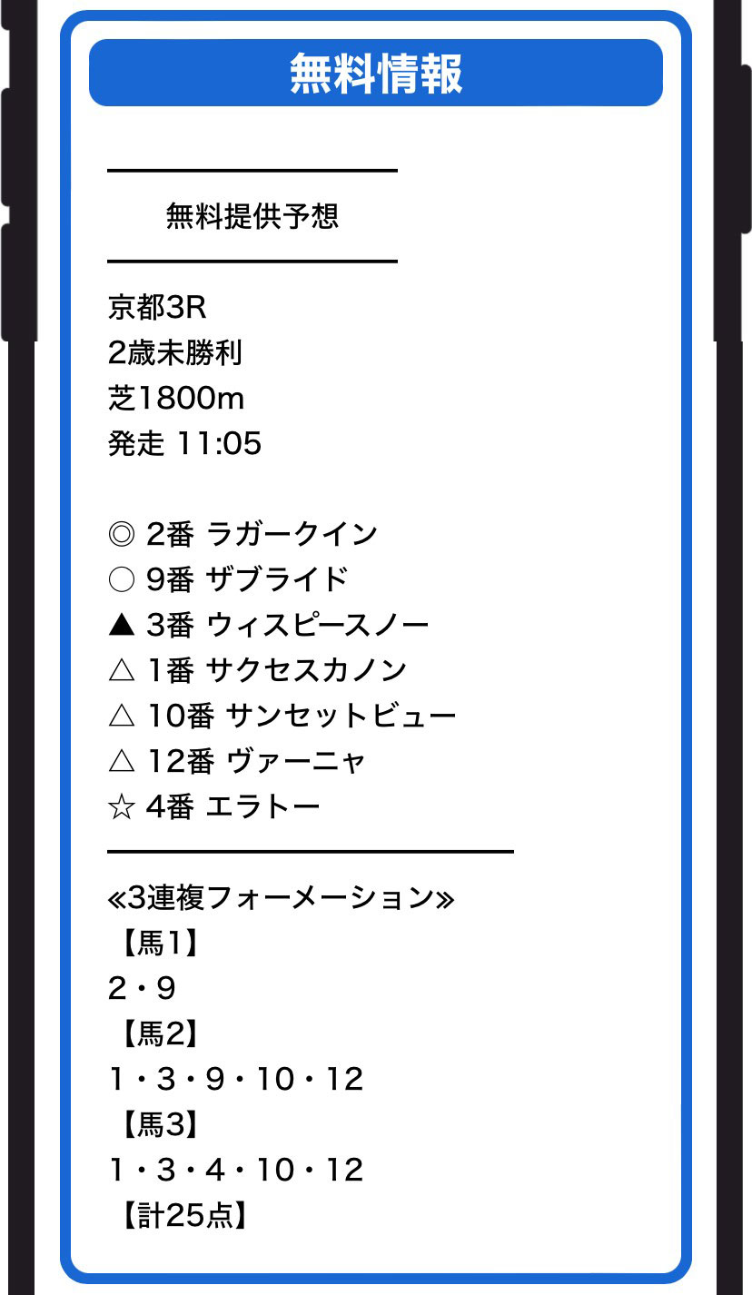 11/18(土)京都4Rの3連複フォーメーション25点