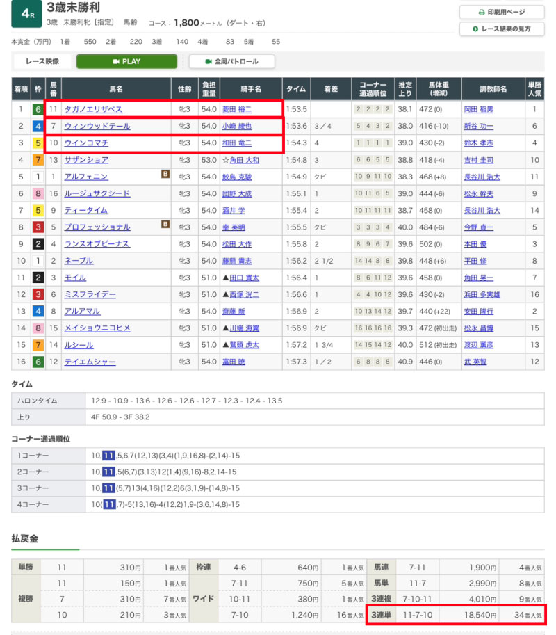 そしてレース結果を見たいと思います。