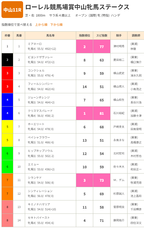 指数順位1位を軸に2~6位までを相手馬に3連単購入!