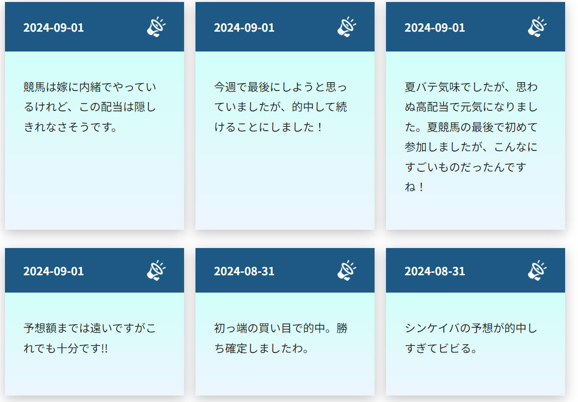 サイトをすでに多くの方からコメントが来ているようで、夏競馬も良い成績で終えられたようですね。