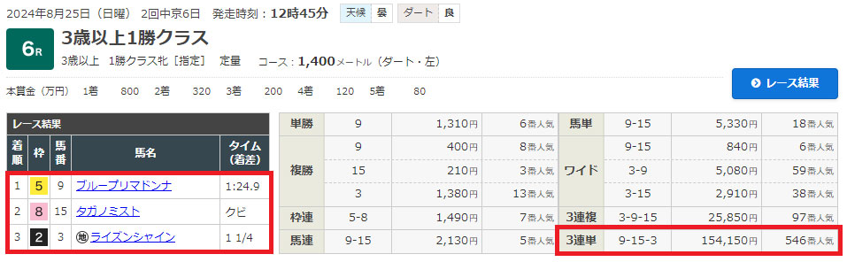 9-15-3で的中!!!まさかの15万馬券が的中しました!!