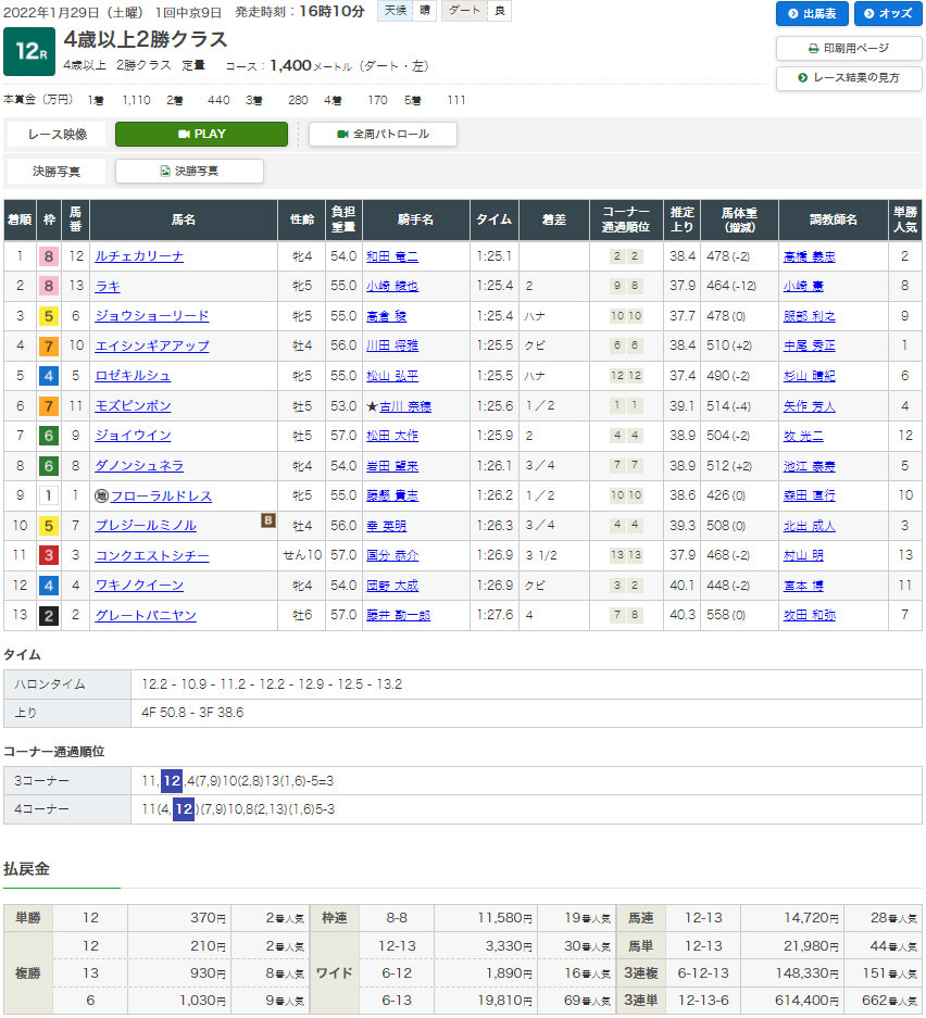 【検証レース:1/29 中京12R 4歳以上2勝クラス】