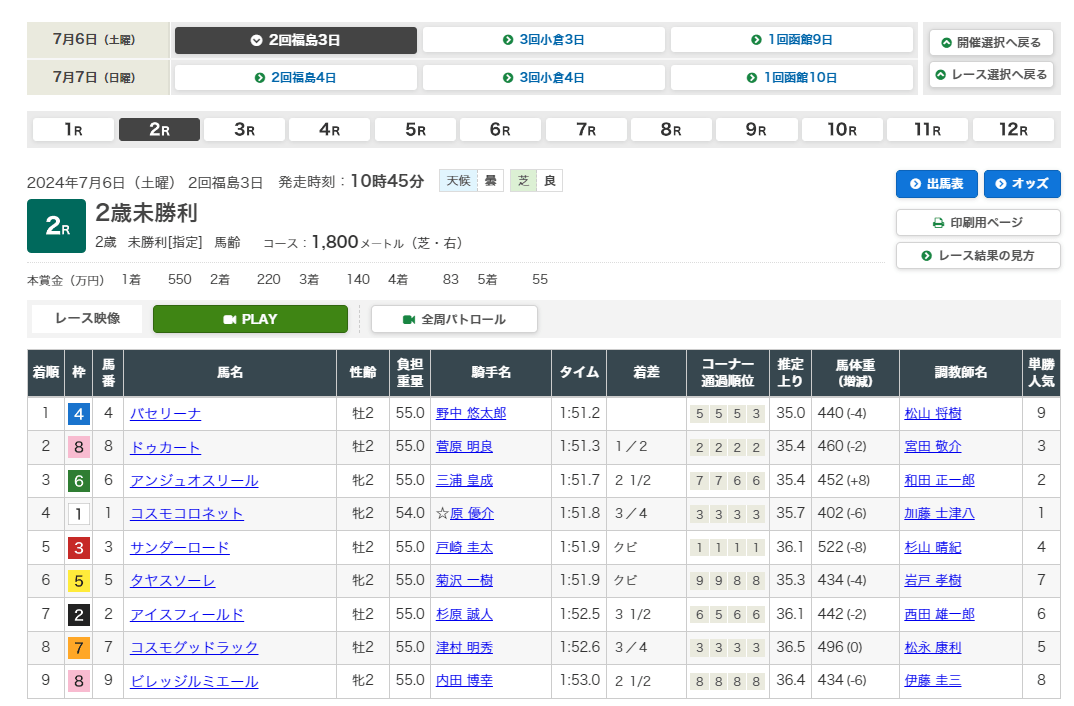 7月14日・小倉5レース 2歳新馬 芝2000m