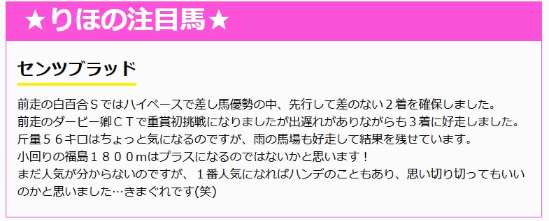 土曜日もそうでしたが、メインレースの予想を出してくれるようですね。