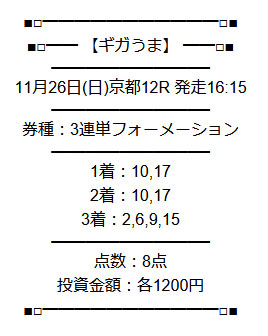 京都12R→294.3倍的中で35万3160円払い戻し!