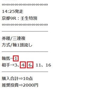 22日(日)京都9Rで無料情報3連複的中!