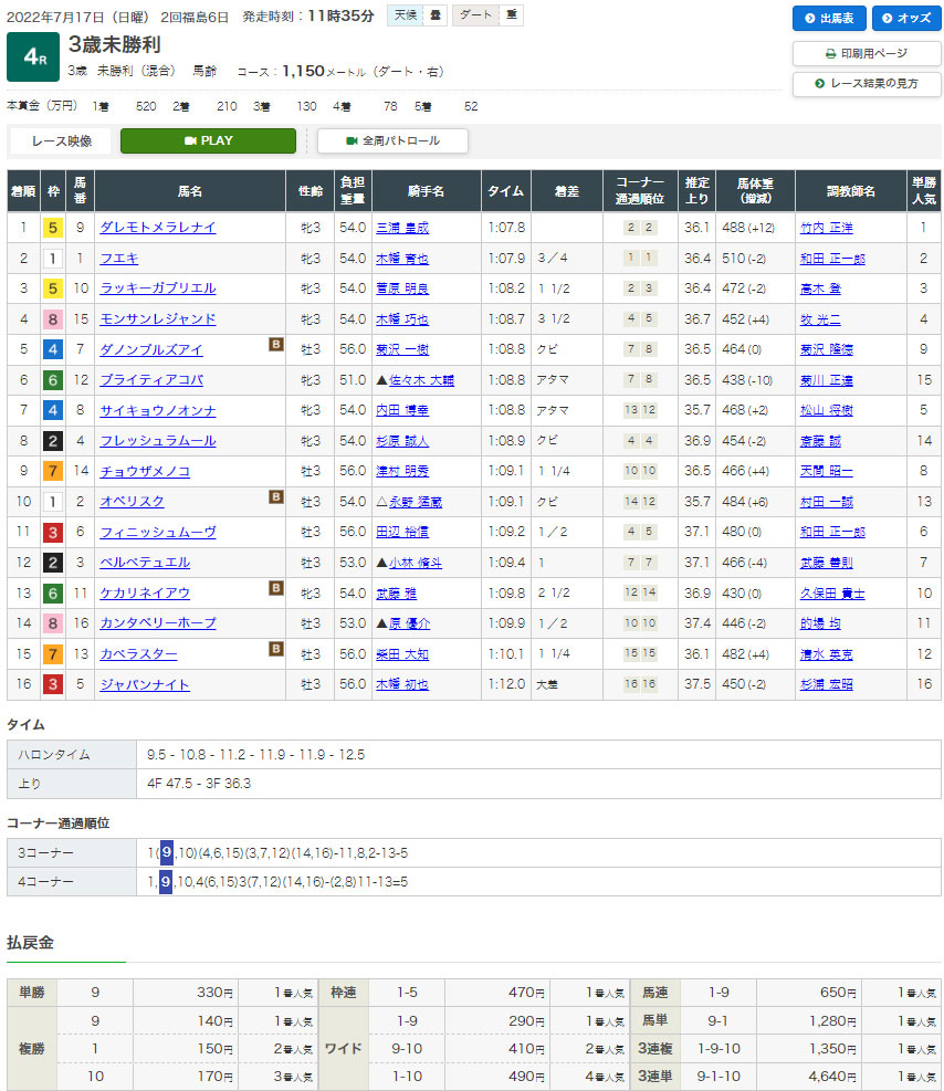 函館12R/ワイド③-⑨(7.2倍)③-⑥(24.2倍)⑥-⑨(11.7倍)全不的中