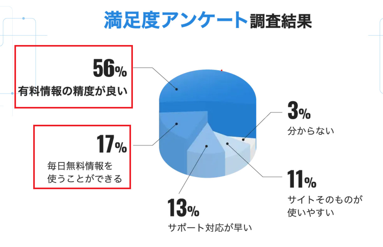 まずは無料情報が当たらなければ有料情報も使う気にはならないですし怪しい信憑性のないアンケート調査だなと思いました。