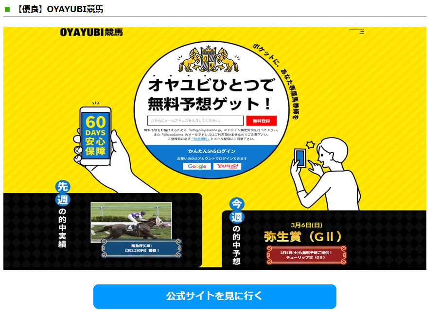 この土日の無料情報的中率100%の神のサイトは【OYAYUBI競馬】というサイトになります!