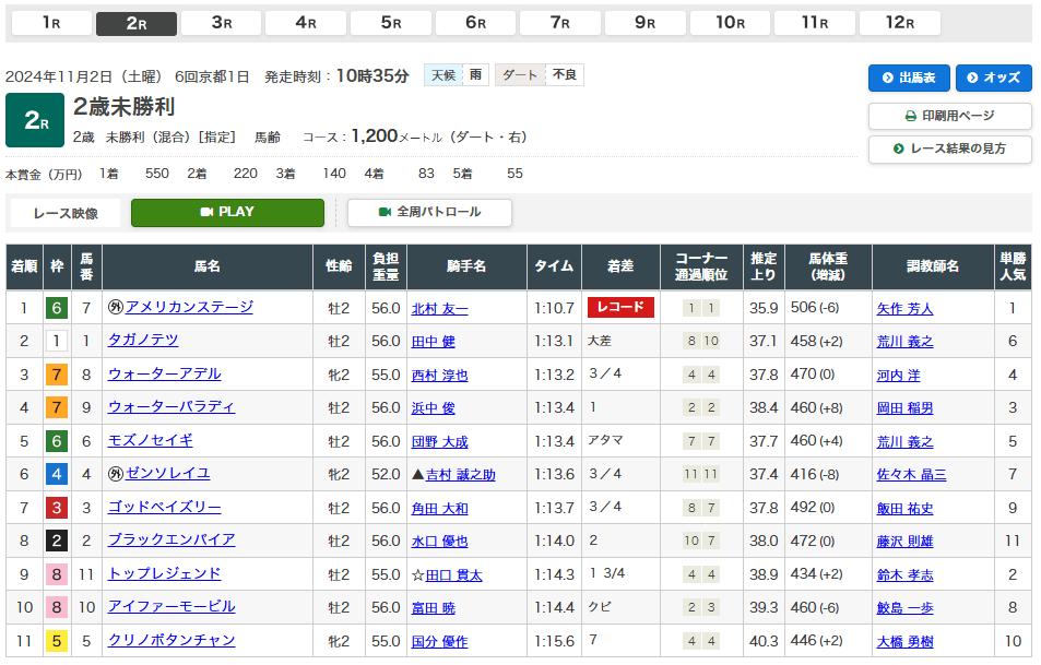 11月3日・東京3レース 2歳未勝利 芝2000m