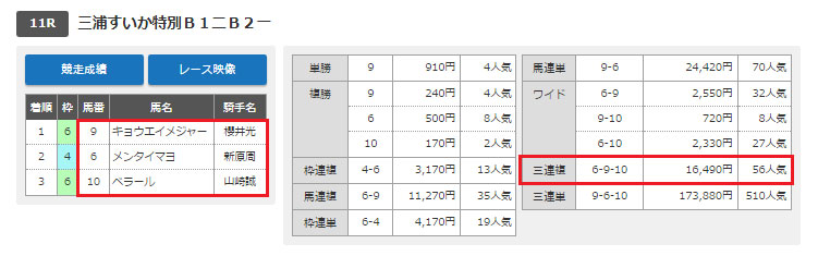 ありがたいことに万馬券の配当になりました。