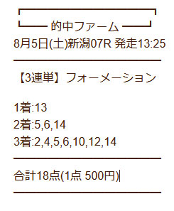 今回【的中ファーム】の無料情報と有料情報にも参加しましたが、