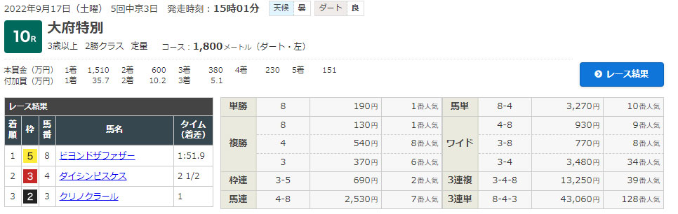 レース結果はコチラになります。
