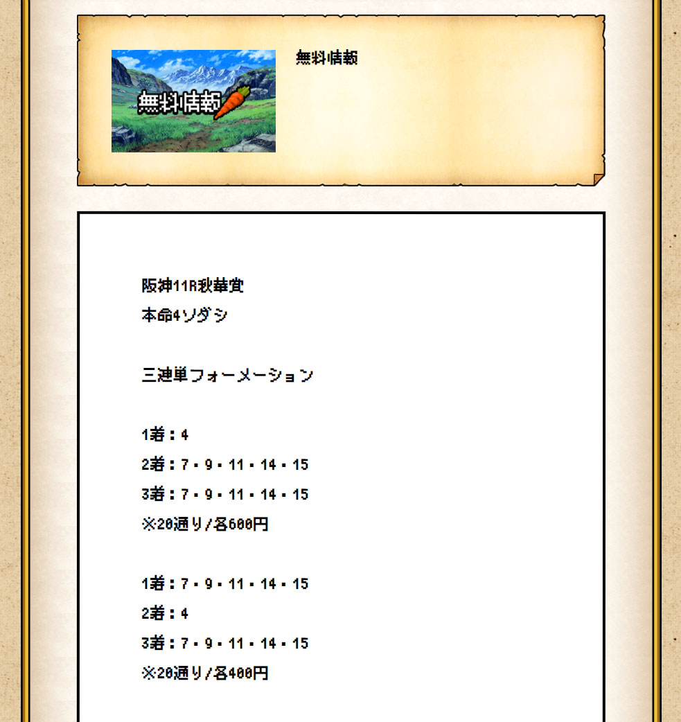 ドラクエ好きの管理人としては本当に稼げるサイトであってほしいと思いながら日曜日の牝馬クラシック第三戦『G1秋華賞』を検証してみたので次週、菊花賞でも使えるのか?