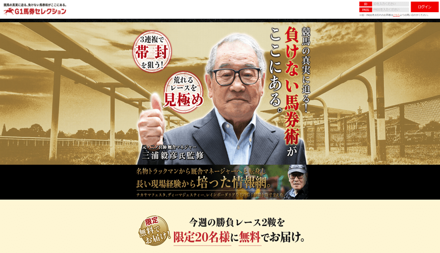 【閉鎖】G1馬券セレクション元二宮厩舎マネージャー三浦氏監修! |