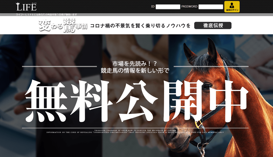 【閉鎖】LIFE市場を先読み競走馬の情報を新しい形で |