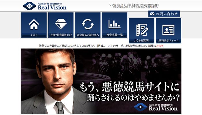 【閉鎖】リアルビジョン(RealVision)完全後払い制 競馬投資サイト |
