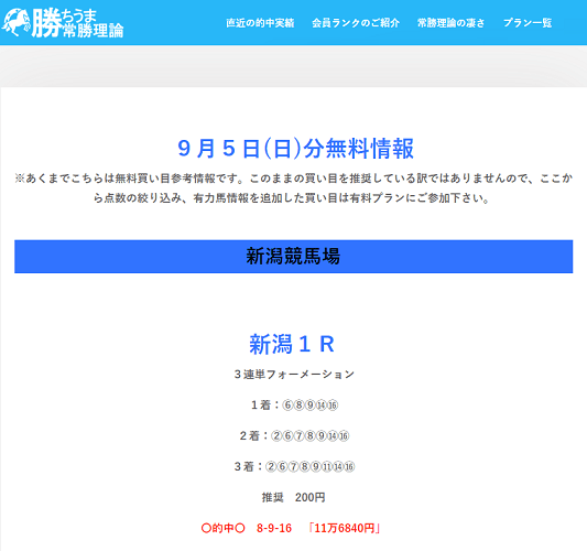 8/29の【勝ちうま常勝理論】の無料買い目情報に参加したんですが札幌3R3連単【2-5-7】払戻金533,600円 で100万円の帯封を簡単に掴めちゃいました。