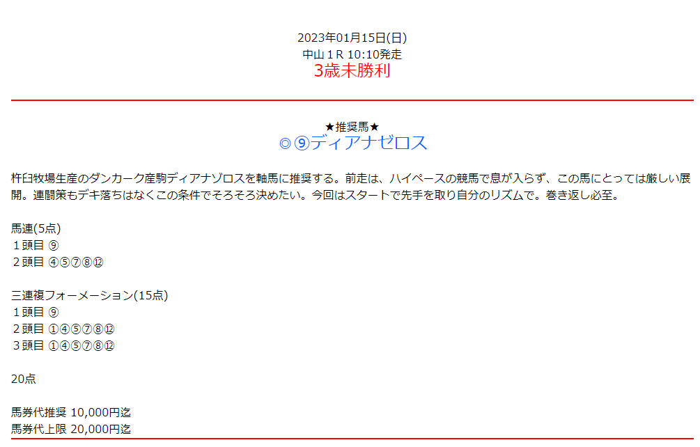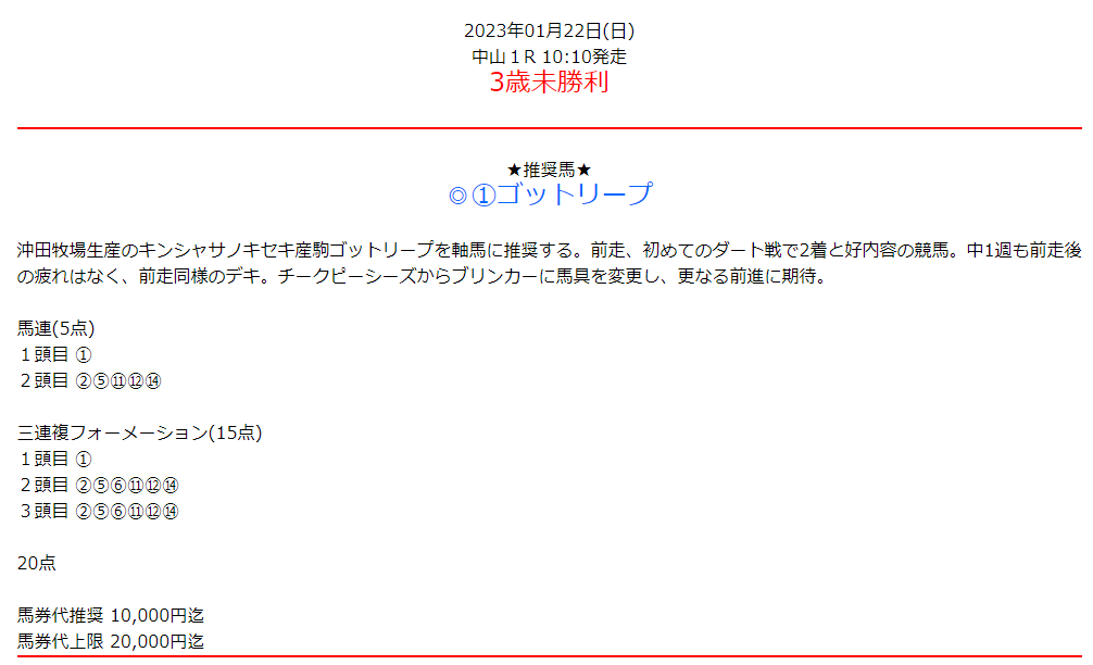 この情報のまんま買いました! 馬連も3連複も的中しました!! 5番人気だったからオッズもおいしかったです\(^o^)/