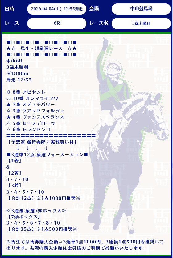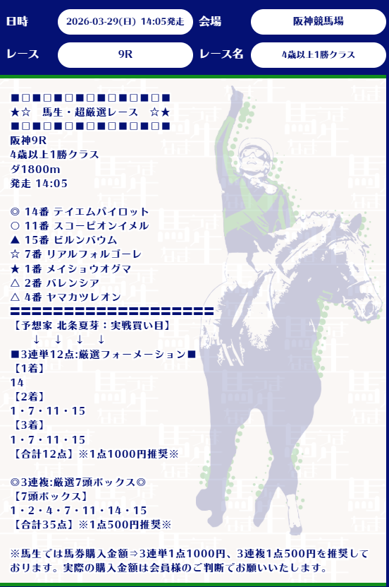今週勝負レースを極秘公開中!