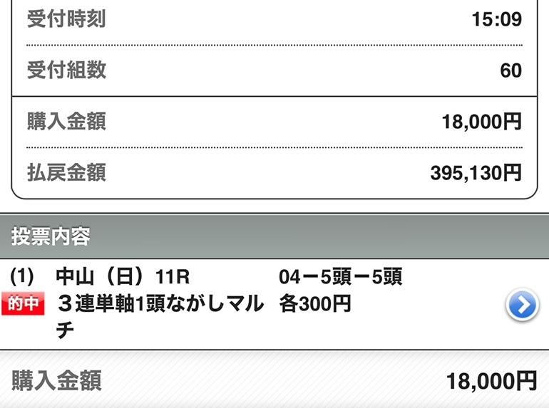 今年の競馬は荒れすぎてどこのサイト使っても全く勝てず不的中が20レース以上、20連敗中でした… これで負けたら宝塚記念まで競馬辞めようかと思っていたけど引退宣言奪回! 10万馬券大当たり!しかも人生初の100万越え配当! 今年の負け分全部1レースで取り返して145万9750円! 競馬は何があっても絶対に引退しません!(笑)