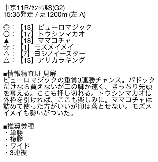 産経賞セントウルステークス(G2)無料情報3連複BOX買いであと一歩で万馬券となる96.4倍的中貰えました。 払い戻し9万6400円とあとちょいで10万円!来週は10万越え期待しちゃいますね、3日間開催だし3日連続的中貰えると信じています。