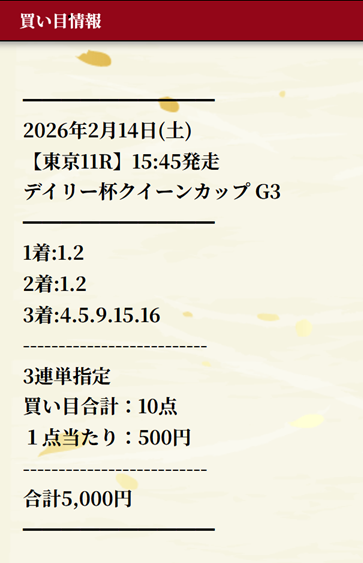 クイーンカップ3連単予想だけど①と②、実質2頭軸だけど