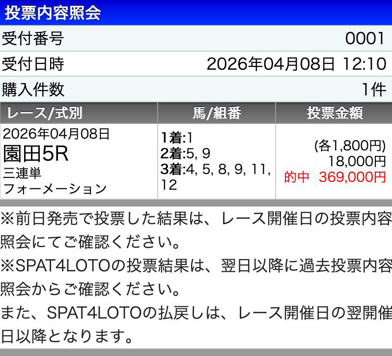 こんな的中とったことないので嬉しすぎます!!
