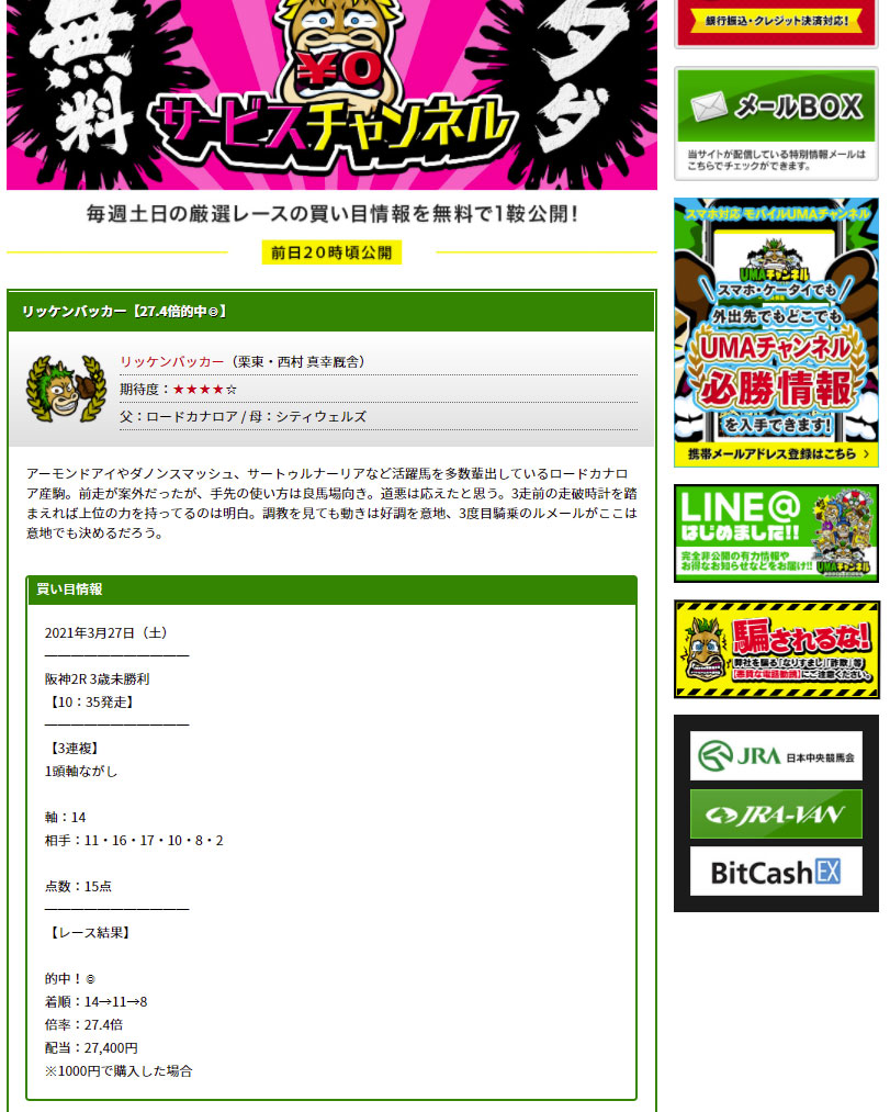 UMAチャンネルは2年前から使用しているけど変わらぬ的中率。