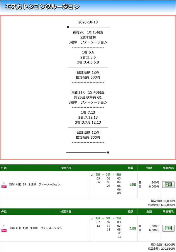 おめでとうございます! 僕はこの情報に参加が間に合わず、的中結果を見た時に参加しておけばよかったと後悔しました… 今週は週明けから速攻参加済みです! 一緒に勝てたら良いですね♪