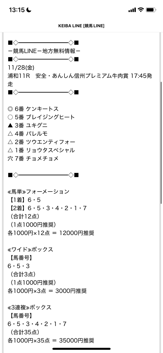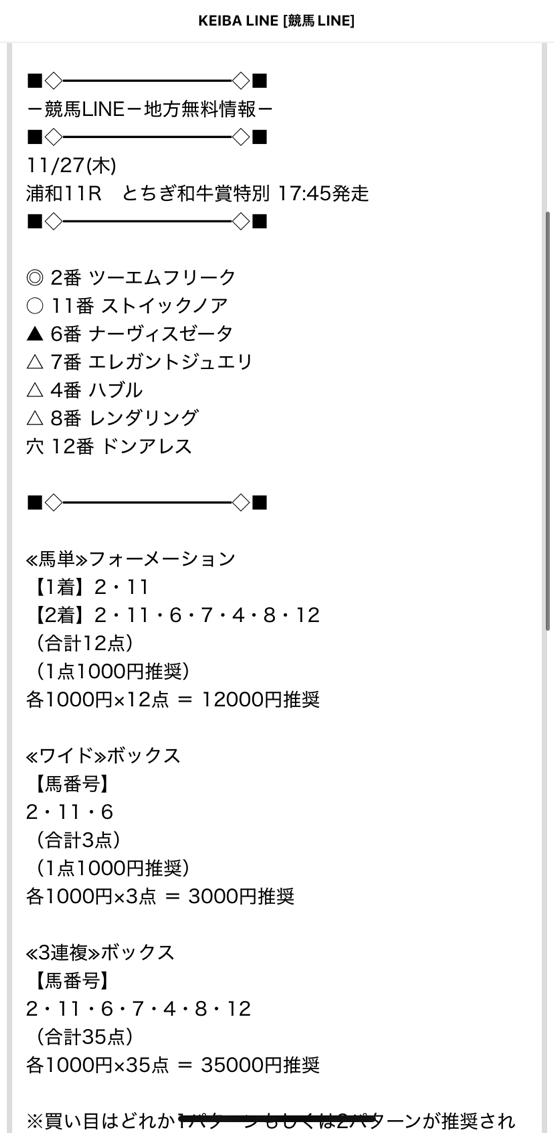 あんまり地方競馬って買う機会ないけど、重賞&買い目出てるところ探して競馬LINEが無料予想出してたから買い目を参考に馬券買ったら馬単&3連複ダブル的中貰えました