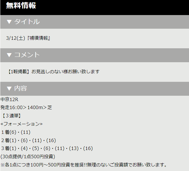 実際には提供してない予想を、あたかも予想していたかのようにサイトトップに張り出します。 皆様、騙されないでください。